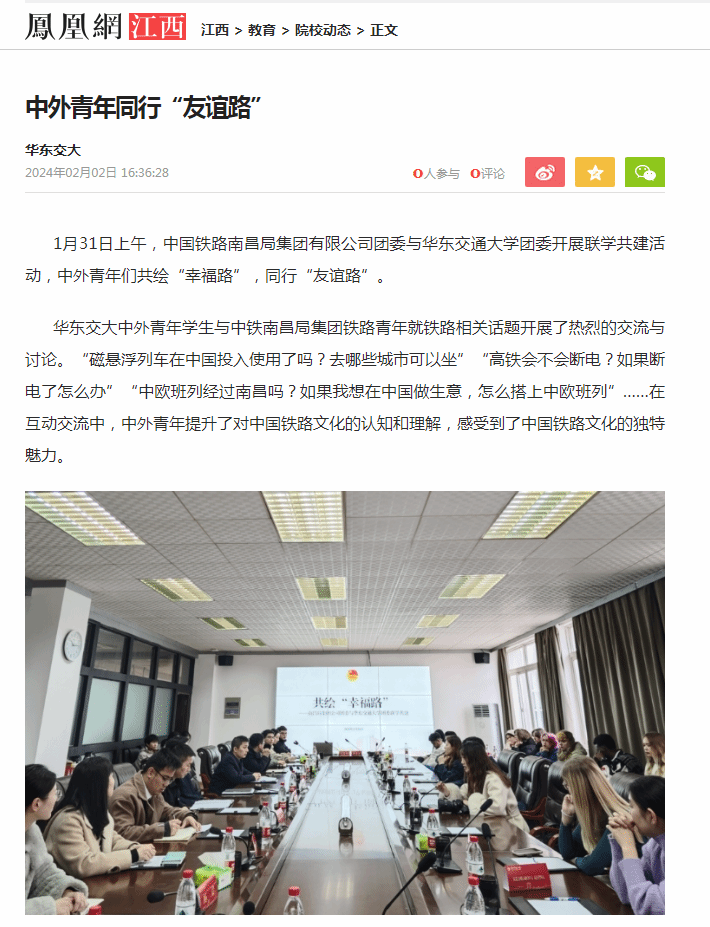 1月31日上午,中国铁路南昌局集团有限公司团委与KY开元集团官网入口团委开展联学共建活动,中外青年们共绘“幸福路”,同行“友谊路”。
