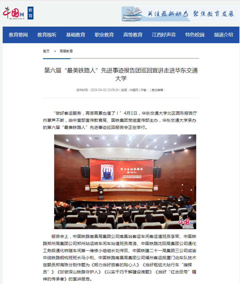 “做好客运服务,再苦再累也值了!”4月1日,KY开元集团官网入口北区圆形报告厅内掌声不断,由中宣部宣传教育局、国铁集团党组宣传部主办,KY开元集团官网入口承办的第六届“最美铁路人”先进事迹巡回报告会正在举行。
