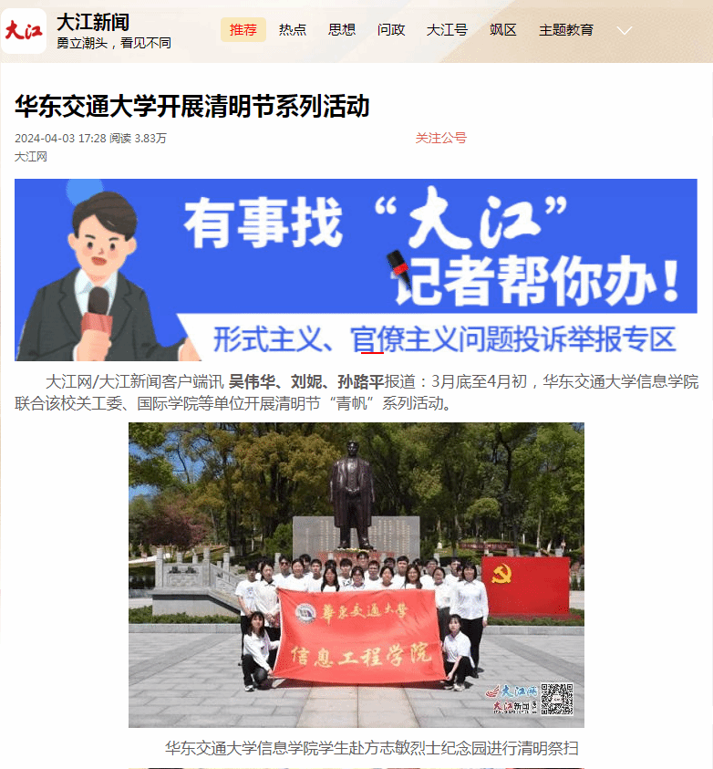 3月底至4月初,KY开元集团官网入口信息学院联合该校关工委、国际学院等单位开展清明节“青帆”系列活动。