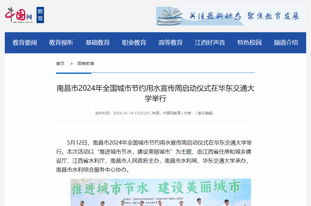 南昌市2024年全国城市节约用水宣传周启动