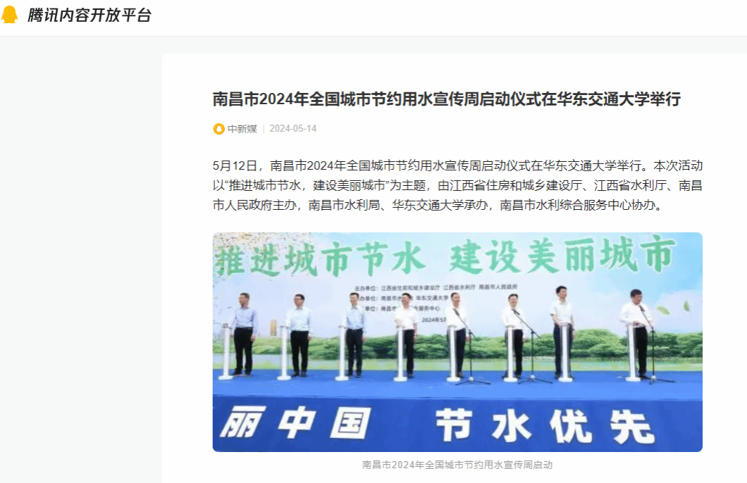 南昌市2024年全国城市节约用水宣传周启动仪式在KY开元集团官网入口举行