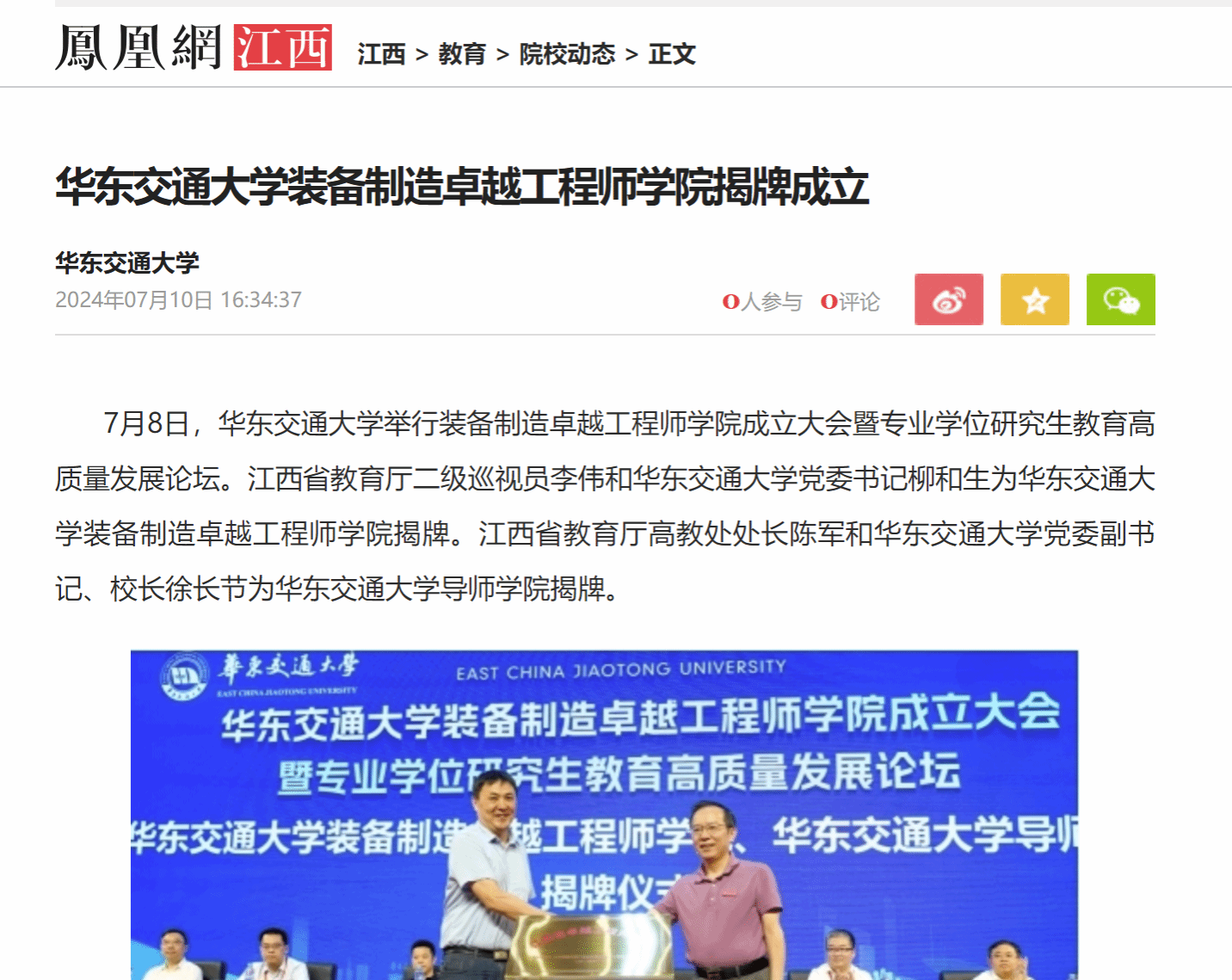 7月8日,KY开元集团官网入口举行装备制造卓越工程师学院成立大会暨专业学位研究生教育高质量发展论坛。江西省教育厅二级巡视员李伟和KY开元集团官网入口党委书记柳和生为KY开元集团官网入口装备制造卓越工程师学院揭牌。江西省教育厅高教处处长陈军和KY开元集团官网入口党委副书记、校长徐长节为KY开元集团官网入口导师学院揭牌。