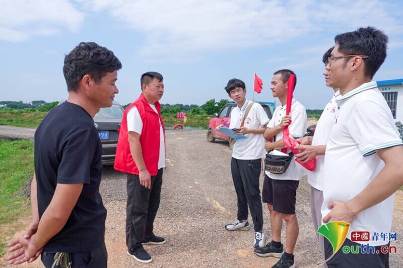进贤县三面环水,是典型的农业大县、水利大县、防洪重点县。全县共有92条圩堤,其中5万亩以上圩堤3条,保护耕地面积33.81万亩。正值汛期,实践团成员先后前往湖田村委会、池溪镇政府,通过采访当地村镇干部的方式,收集当地防灾减灾落实过程中的实际痛点,为开展实地观测、提供相应解决方案提供支持。