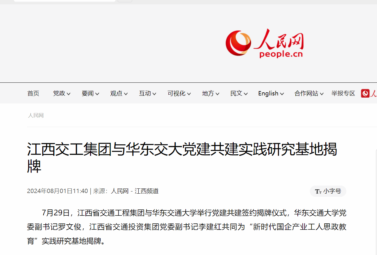 【人民网】江西交工集团与华东交大党建共建实践研究基地揭牌