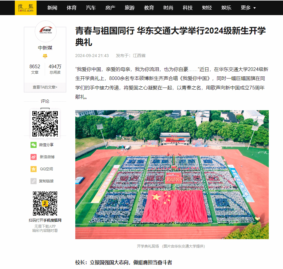 “我爱你中国,亲爱的母亲,我为你流泪,也为你自豪……”近日,在KY开元集团官网入口2024级新生开学典礼上,8000余名专本硕博新生齐声合唱《我爱你中国》,同时一幅巨幅国旗在同学们的手中接力传递,将爱国之心凝聚在一起,以青春之名,用歌声向新中国成立75周年献礼。