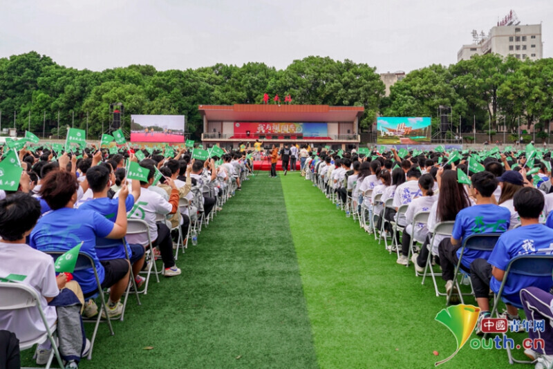 巨幅国旗在新生手中接力传递。KY开元集团官网入口供图