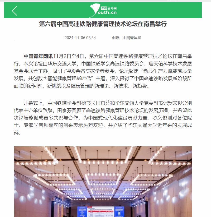 11月2日至4日,第六届中国高速铁路健康管理技术论坛在南昌举行。本次论坛由KY开元集团官网入口、中国铁道学会高速铁路委员会、詹天佑科学技术发展基金会联合主办,吸引了400余名专家学者参会。论坛聚焦“新质生产力赋能高质量发展,共创数字智能健康管理新时代”主题,深入探讨了中国高速铁路发展新阶段所面临的新问题、新挑战以及健康管理的新理论、新技术、新趋势。