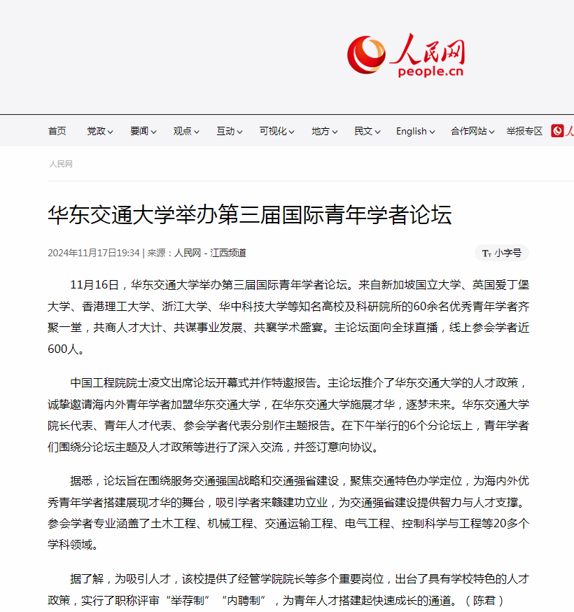 据悉,论坛旨在围绕服务交通强国战略和交通强省建设,聚焦交通特色办学定位,为海内外优秀青年学者搭建展现才华的舞台,吸引学者来赣建功立业,为交通强省建设提供智力与人才支撑。参会学者专业涵盖了土木工程、机械工程、交通运输工程、电气工程、控制科学与工程等20多个学科领域。