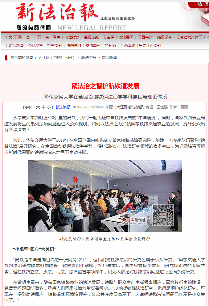 “高铁是中国走向世界的一张闪亮‘名片’,但我们对铁路法治的研究还属于小众研究。”KY开元集团官网入口铁路法治研究院常务副院长、教授曾明生解释,2019年前后,国内只有极少数专门研究铁路法的专家学者,但在铁路立法、执法、司法、法律监督等领域中,尚无人涉足对铁路法治问题进行全面系统研究。