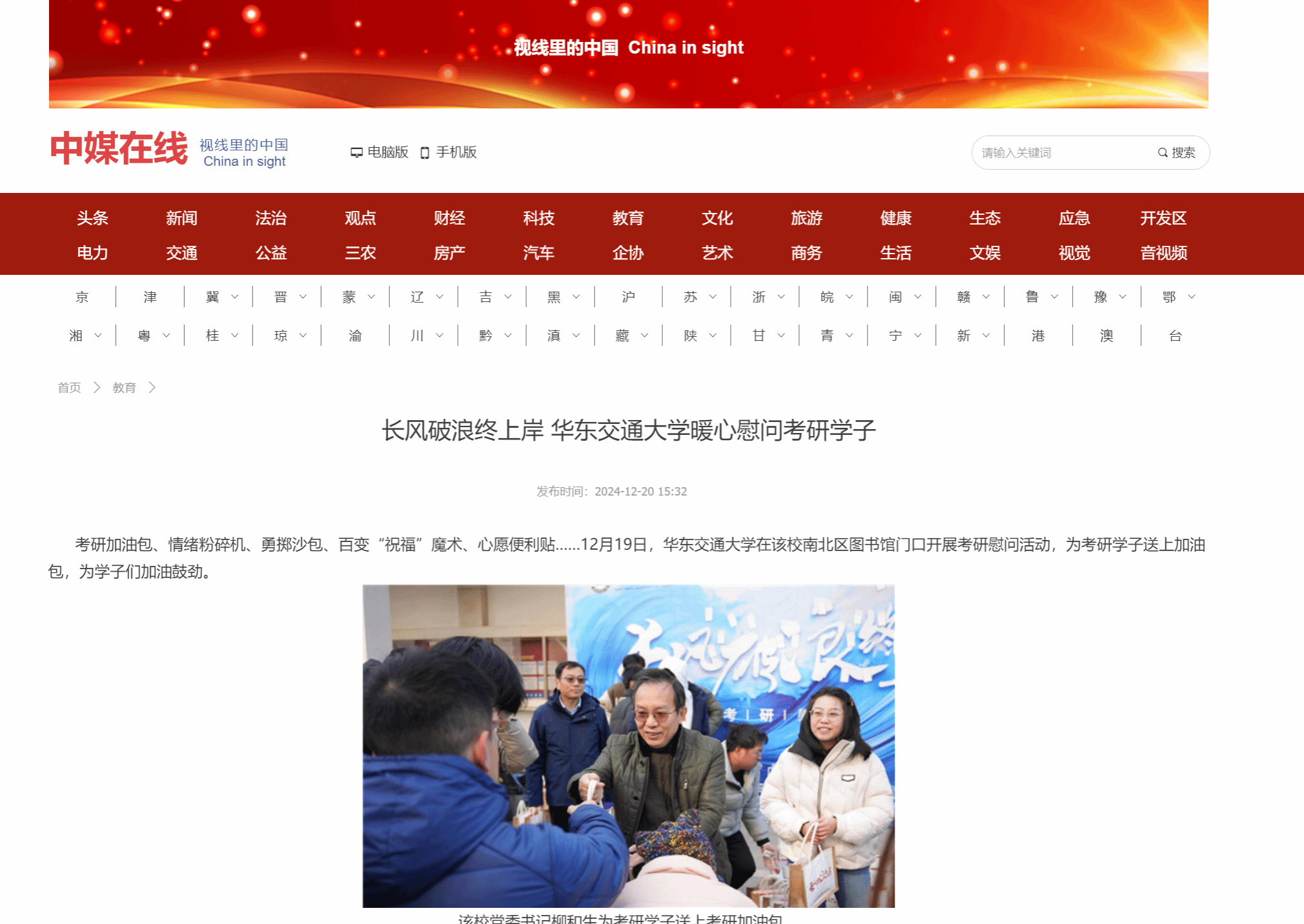 该校党委副书记、校长徐长节为考研学子送上考研加油包。