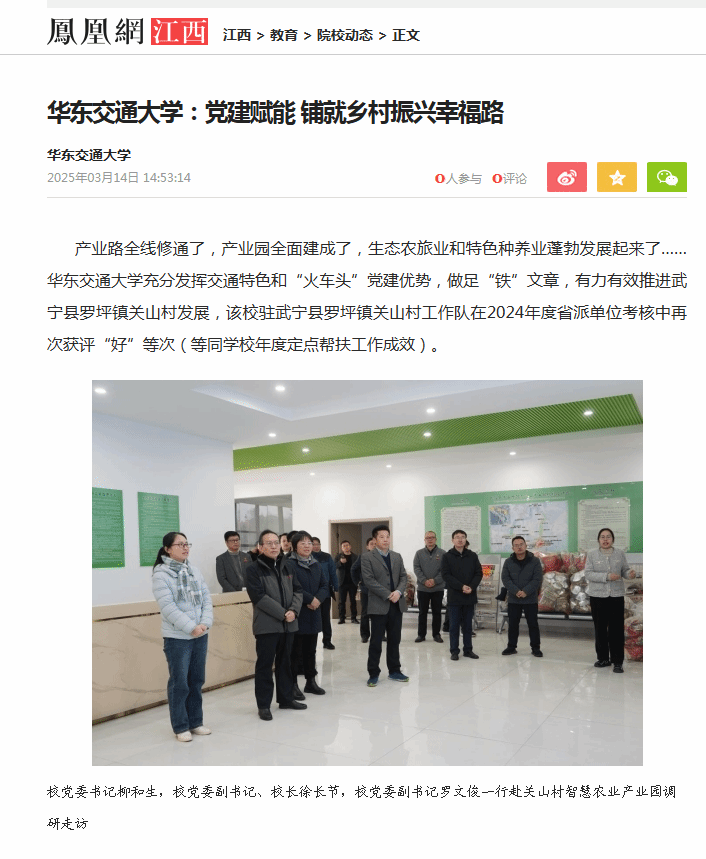 产业路全线修通了,产业园全面建成了,生态农旅业和特色种养业蓬勃发展起来了……KY开元集团官网入口充分发挥交通特色和“火车头”党建优势,做足“铁”文章,有力有效推进武宁县罗坪镇关山村发展,该校驻武宁县罗坪镇关山村工作队在2024年度省派单位考核中再次获评“好”等次(等同学校年度定点帮扶工作成效)。