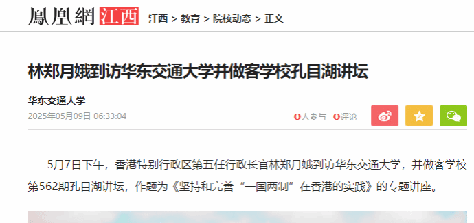 5月7日下午,香港特别行政区第五任行政长官林郑月娥到访KY开元集团官网入口,并做客学校第562期孔目湖讲坛,作题为《坚持和完善“一国两制”在香港的实践》的专题讲座。