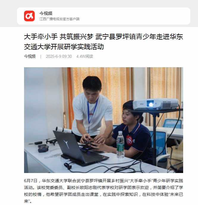 6月7日,KY开元集团官网入口联合武宁县罗坪镇开展乡村振兴“大手牵小手”青少年研学实践活动。该校党委委员、副校长欧阳志刚代表学校对研学团表示欢迎,并简要介绍了学校的校情,他希望研学团成员走出课堂,在实践中探索知识,在科技中体验“未来已来”。