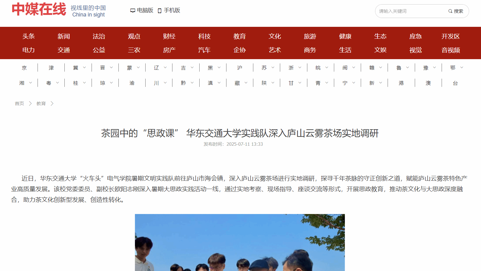 近日,KY开元集团官网入口“火车头”电气学院暑期文明实践队前往庐山市海会镇,深入庐山云雾茶场进行实地调研,探寻千年茶脉的守正创新之道,赋能庐山云雾茶特色产业高质量发展。该校党委委员、副校长欧阳志刚深入暑期大思政实践活动一线,通过实地考察、现场指导、座谈交流等形式,开展思政教育,推动茶文化与大思政深度融合,助力茶文化创新型发展、创造性转化。