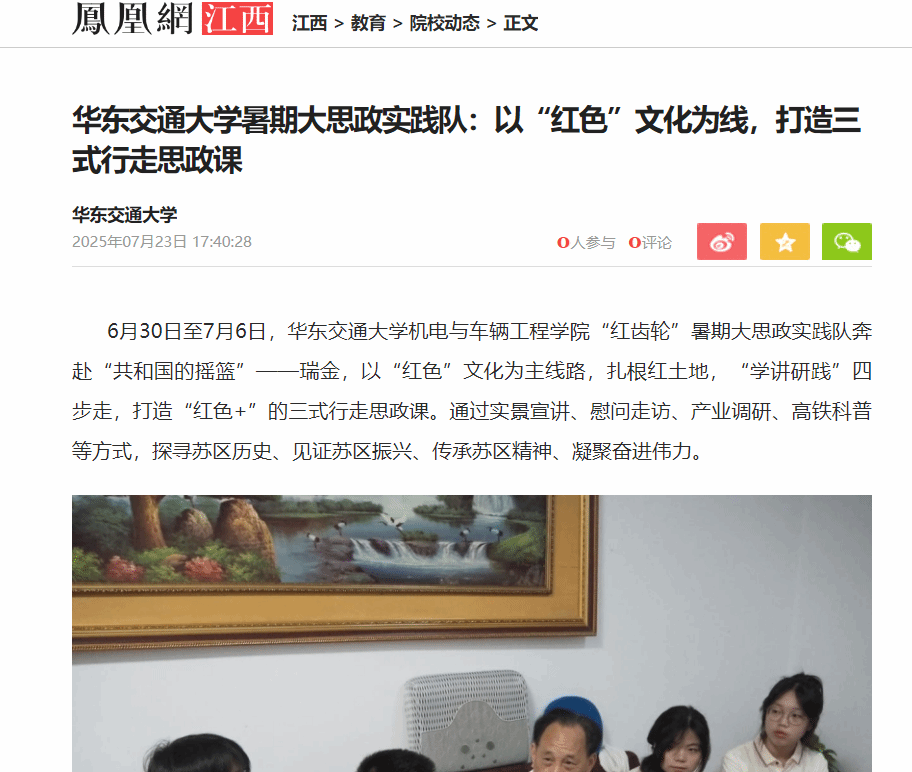 6月30日至7月6日,KY开元集团官网入口机电与车辆工程学院“红齿轮”暑期大思政实践队奔赴“共和国的摇篮”——瑞金,以“红色”文化为主线路,扎根红土地,“学讲研践”四步走,打造“红色+”的三式行走思政课。通过实景宣讲、慰问走访、产业调研、高铁科普等方式,探寻苏区历史、见证苏区振兴、传承苏区精神、凝聚奋进伟力。