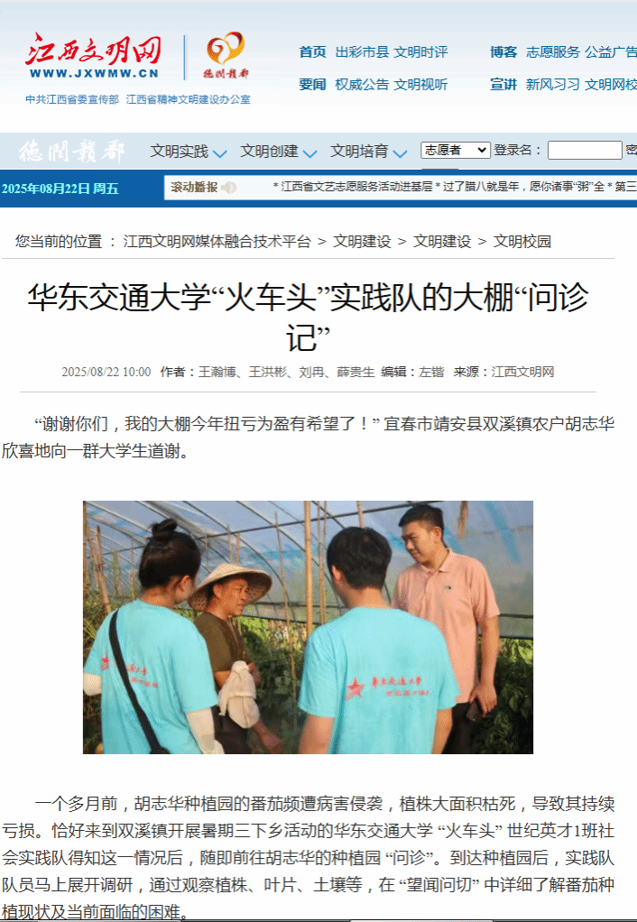 从校园到大棚,从书本到实践,这场持续一个月的 “问诊”,不仅帮农户解决了实际问题,更生动诠释了知识的力量。未来,实践队将继续发挥桥梁纽带作用,畅通诉求反映通道,第一时间将调研实情与农民心声向上传递,凝聚社会合力纾解难题。