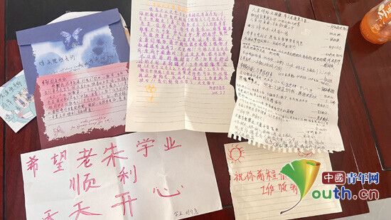 学生写给朱德胜的留言和告别信。朱德胜供图