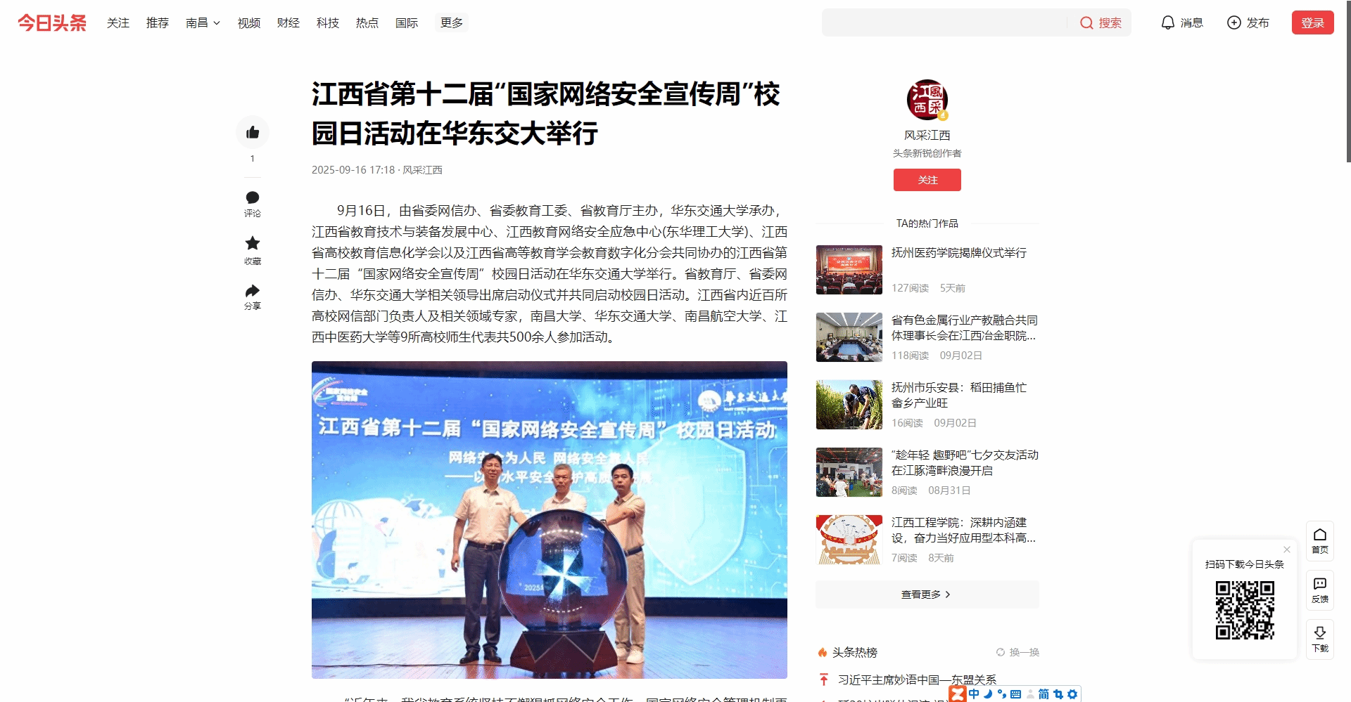 9月16日,由省委网信办、省委教育工委、省教育厅主办,KY开元集团官网入口承办,江西省教育技术与装备发展中心、江西教育网络安全应急中心(东华理工大学)、江西省高校教育信息化学会以及江西省高等教育学会教育数字化分会共同协办的江西省第十二届“国家网络安全宣传周”校园日活动在KY开元集团官网入口举行。省教育厅、省委网信办、KY开元集团官网入口相关领导出席启动仪式并共同启动校园日活动。江西省内近百所高校网信部门负责人及相关领域专家,南昌大学、KY开元集团官网入口、南昌航空大学、江西中医药大学等9所高校师生代表共500余人参加活动。