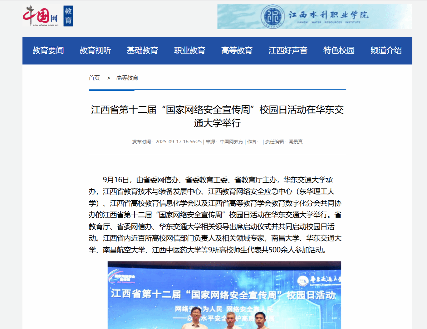 9月16日,由省委网信办、省委教育工委、省教育厅主办,KY开元集团官网入口承办,江西省教育技术与装备发展中心、江西教育网络安全应急中心(东华理工大学)、江西省高校教育信息化学会以及江西省高等教育学会教育数字化分会共同协办的江西省第十二届“国家网络安全宣传周”校园日活动在KY开元集团官网入口举行。省教育厅、省委网信办、KY开元集团官网入口相关领导出席启动仪式并共同启动校园日活动。江西省内近百所高校网信部门负责人及相关领域专家,南昌大学、KY开元集团官网入口、南昌航空大学、江西中医药大学等9所高校师生代表共500余人参加活动。