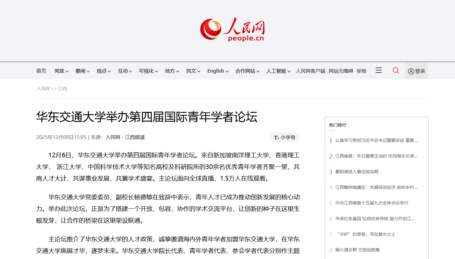 据悉,论坛旨在围绕服务交通强国战略和交通强省建设,聚焦交通特色办学定位,为海内外优秀青年学者搭建展现才华的舞台,吸引学者来赣建功立业,为交通强省建设提供智力与人才支撑。参会学者专业涵盖了土木工程、机械工程、交通运输工程、电气工程、控制科学与工程、电子信息、材料等学科领域。(杨宇辰、丁雨皓摄)