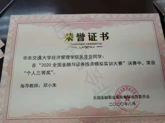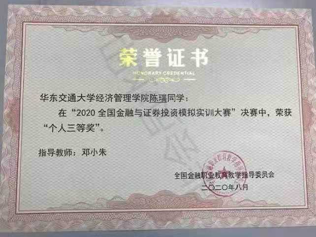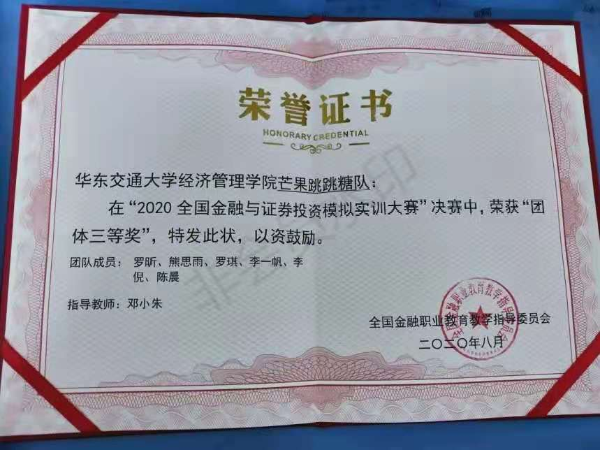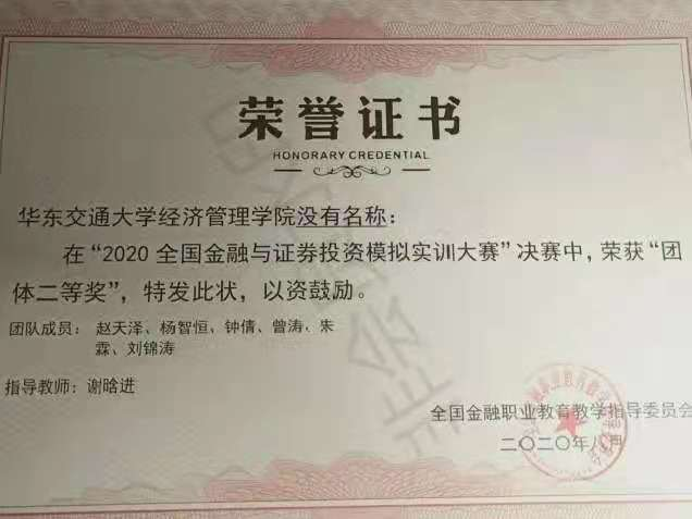 在“全国金融与证券投资模拟实训大赛”中,我院老师细心指导,同学们也精心准备,充分利用所学专业知识,从一系列的赛事考验中脱颖而出,成绩斐然,其中共有7支队伍、20位同学荣获第二、第三等奖!