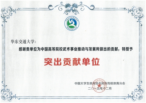 开元荣获中国大学生体育协会民族传统体育分会突出贡献单位称号