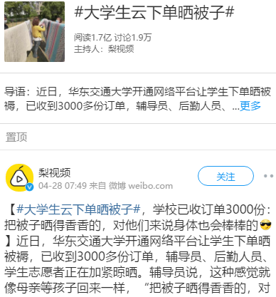 “云接单”晒被褥,暖心迎接学生返校学习