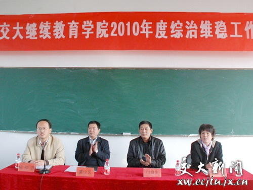 日前,继续教育学院2010年度综治维稳工作会议在22栋412举行召开。武装部部长、保卫处副处长付自生,继续教育学院院长黄少云、党总支书记李立玲、副院长李慧如、吴志峰等出席会议。会议由学院党总支副书记何仲坚主持。...
