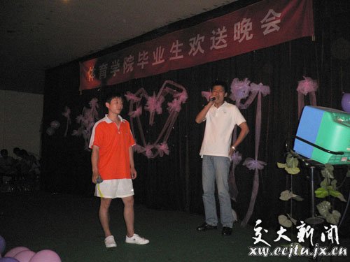 6月18日晚,体育学院欢送2007届毕业生晚会在大学生活动中心三楼举行。体育学院党总支书记江根金、院长王志斌、党总支副书记阳国诚、副院长邓卫权、陈荣参加了欢送晚会。 王志斌致欢送辞。他对所有毕业生顺利完成学...