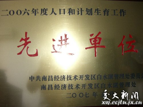 近日,开元计生办获得南昌市经济技术开发区二00六年度人口和计划生育工作先进单位,特此报喜。