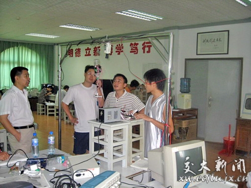8月11日上午,校团委书记石初军、电气学院党总支副书记张晓明和学工办主任王勇一同到电气学院10#楼电子创新基地看望了暑假积极备战2007年全国电子设计大赛的同学和老师。 校团委石书记用这几年交大在电子设计大赛...