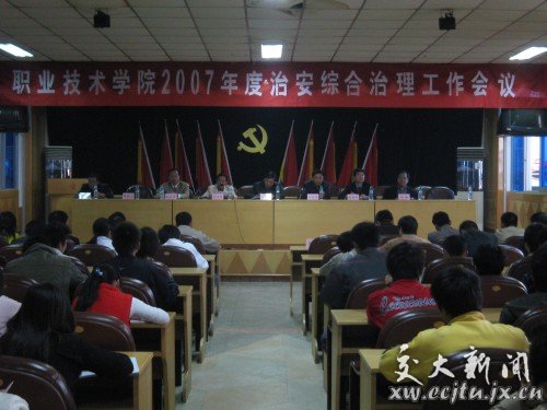 11月15日下午,高职学院2007年度治安综合治理工作大会在北区礼堂三楼召开。校长助理黄稚龙,保卫处直属党支部书记、副处长付自生,院党总支书记罗来发,副院长刘巨声等出席。会议由党总支副书记段世年主持。 ...