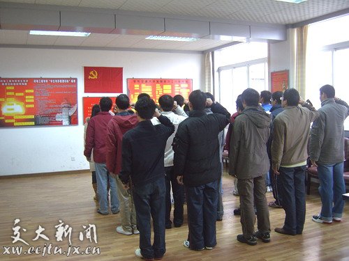 为响应十七大号召,12月21日下午,机电学院预备党员入党宣誓仪式在教11栋二楼举行。100多名新党员面对党旗庄严宣誓。仪式由党支部常务主任盛家宝同志主持。 新党员举起右手,庄严宣誓:“我志愿加入中国共产党...