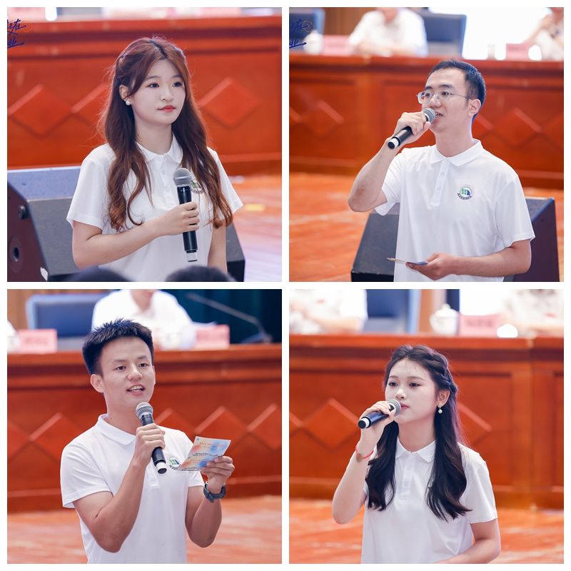 2025届毕业生代表尤靖贻、曹宇杰、龚芳云、黄文龙分享了他们筑梦路上的成长和奋斗故事,表示将在筑梦路上继续以挺膺之姿担当作为,到祖国和人民最需要的地方,在强国建设的新征程中更好书写华交人的青春答卷。