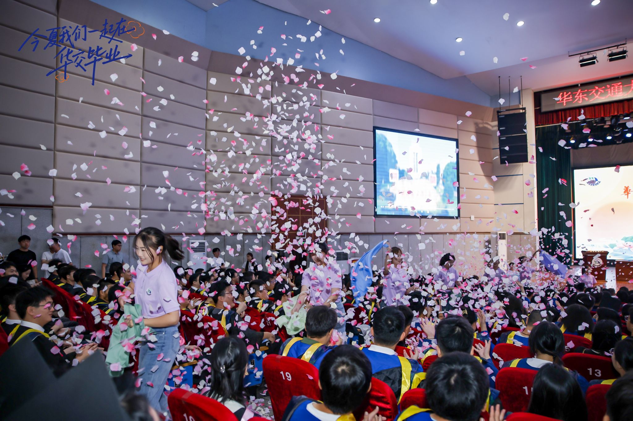 “那年盛夏,汇聚双港,各自追寻着光亮;心之所向,热爱滚烫,华交滋养着希望……”2025年毕业典礼在原创毕业歌曲《日新华交》的旋律中拉开了序幕。